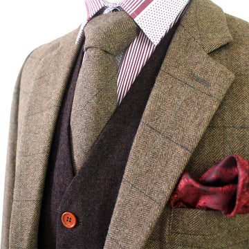 Het pak heeft een driedelig ontwerp, bestaande uit een getailleerd jasje, vest en pantalon. Elk onderdeel is zorgvuldig vervaardigd om de onberispelijke structuur van het pak te behouden en tegelijkertijd maximaal comfort en bewegingsvrijheid te bieden. Het jasje heeft een inkeping in de revers en een sluiting met twee knopen, wat een tijdloze charme uitstraalt. Het vest voegt een vleugje elegante elegantie toe en versterkt de algehele esthetiek van het ensemble. De pantalon is vakkundig getailleerd met een platte voorkant en een normale pasvorm, wat zorgt voor een klassieke en verfijnde look.